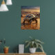 A wise circuit tortoise crosses vast solar dunes, built from layered shell panels, glowing energy cells, and durable metallic limbs. Golden, amber, cyan, and bronze light radiate from its geometric shell like a moving power source. Sand waves, mirrored heat reflections, solar towers, drifting dust, distant mountains, and a bright futuristic sky create a peaceful desert scene. This thoughtful design symbolizes endurance and calm progress, making it ideal for offices, studies, modern interiors, and tortoise lovers.