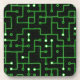 A digital abstract pattern resembling a stylized computer circuit board, in glowing green and black.