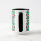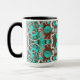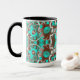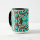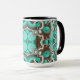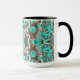 Coffee Tea Beverage Cup Mug printed with Circular Celestial Concentric Circles Pattern artwork design image by TheFabricSeal at Zazzle. Digital graphic design manipulation with many overlapping geometric mirrored box patterns with Kandinsky concentric style color layered circles throughout. Santa Fe Southwestern desert and Indian inspired colors of turquoise blue and green, copper, rust, red, brown, tan and gray. Influenced also by art of the Orient, Mediterranean, Indian and Tondo Tondos Renaissance styles with a modern mechanical engineering drawing.