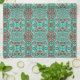 Circular Celestial Concentric Circles Patterned artwork design image by TheFabricSeal at Zazzle. Digital graphic design manipulation with many overlapping geometric mirrored box patterns with Kandinsky concentric style color layered circles throughout. Santa Fe Southwestern desert and Indian inspired colors of turquoise blue and green, copper, rust, red, brown, tan and gray. Influenced also by art of the Orient, Mediterranean, Indian and Tondo Tondos Renaissance styles with a modern mechanical engineering drawing.