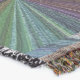 A quality printed throw has its advantages. This is a much finer weave throw than its loopier cousins, and though lighter, it is worth the investment for custom room accessorizing. The back is much prettier than the typical brown, and the fringe on the long sides very vivid, the selvage nicely done. Before photographing, I washed the throw in cold water, delicate, with a thicker woven throw the same size. On tumble dry low, this throw was dry in half the time as the other. This is a very practical quality if you use throws for furniture covers or to wrap up in frequently. The sleekness of the fabric makes it a great layer for accenting or protecting without the feeling of sitting on too much stuff. Perfect for napping or when you feel a light chill coming on. The color printing is beautiful and on this fabric, matched the design and color of my Photoshop image. This is an advantage for blending room fabrics and colors. The fringe on the short sides prints the colors from the design image and therefore varies from the side fringe. I streaked a white fractal line through the plaid pattern to give the illusion of weaving. This printed as crisp as an illusory thread, and put some white in the short side fringe, showing another advantage of print vs loomed- for artistic purposes, line lines, detail, and color integrity can be planned and preserved. My loomed throws have color limitations and more of a needlepoint texture. Print throws reproduce an exact image. The throw felt a little stiff straight out of the package, but this went away in the first delicate wash. Of course I searched the wash water for ink or bleeding and there was none.