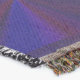 A quality printed throw has its advantages. This is a much finer weave throw than its loopier cousins, and though lighter, it is worth the investment for custom room accessorizing. The back is much prettier than the typical brown, and the fringe on the long sides very vivid, the selvage nicely done. Before photographing, I washed the throw in cold water, delicate, with a thicker woven throw the same size. On tumble dry low, this throw was dry in half the time as the other. This is a very practical quality if you use throws for furniture covers or to wrap up in frequently. The sleekness of the fabric makes it a great layer for accenting or protecting without the feeling of sitting on too much stuff. Perfect for napping or when you feel a light chill coming on. The color printing is beautiful and on this fabric, matched the design and color of my Photoshop image. This is an advantage for blending room fabrics and colors. The fringe on the short sides prints the colors from the design image and therefore varies from the side fringe. I streaked a white fractal line through the plaid pattern to give the illusion of weaving. This printed as crisp as an illusory thread, and put some white in the short side fringe, showing another advantage of print vs loomed- for artistic purposes, line lines, detail, and color integrity can be planned and preserved. My loomed throws have color limitations and more of a needlepoint texture. Print throws reproduce an exact image. The throw felt a little stiff straight out of the package, but this went away in the first delicate wash. Of course I searched the wash water for ink or bleeding and there was none.