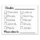 Fully customizable stamp for circular letters and lists where it comes handy to check who read the note and who did not yet get see it. Suitable for offices, groups, clubs, family command center.