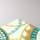 © Veronique Charron / Wild Apple. This image of circular patterns feature blue and gold colors. The image has a tan colored, floral patterned background.