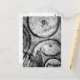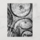 Paris postcard with black and white photography of circular patterns in the ceiling of Sacre Couer Cathedral in Montmarte.