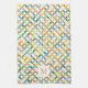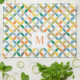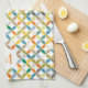 Bold graphic kitchen towel in shades of burnt orange, teal green blue, olive green, sap green, muted blue and white in a circles style design with a monogram in orange on white. Ideal for adding some interest in your kitchen. This design has plenty of different tonal colors to help with your color co-ordination and a monogram for a personalized touch. Graphic and design by www.myittleeden.com