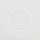This elegant wedding embosser design features classic block lettering for your address combined with elegant and modern script writing for the names of the bride and groom. The couples' names are framed by a classic fluted edge and the address is surrounded by a very slim circular frame.
