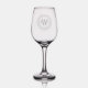 The circular scrollwork frame of this wine glass design provides an elegant setting for three initials. Use the provided template to add your initials as shown. Search ID431 to see other products with this design.