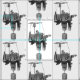 Classic Drawing of an antique Circular Sock Knitting Machine arranged as an all-over pattern.