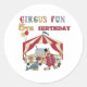 Circus 5th Birthday featuring the big top with a clown, seal, elephant, monkey, lion, tiger, zebra, and colorful, fun text.