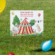 Circus themed birthday party sign to personalize - The welcome sign is titled "step right up and join the fun .. at [name's] party" . The design features a big top with circus animals practicing in the park, including elephant, tiger and bear.