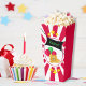 Bring the magic of the big top to your celebration with this vintage-style circus favor box! Designed like an old-fashioned popcorn box, it features bold red and white stripes, cheerful yellow stars, and a central white oval with a customizable black “Enjoy” sign. Below, a friendly lion sits surrounded by bright red, yellow, and green balloons—perfect for birthdays, carnival parties, and circus-themed celebrations. Ideal for holding candy, small toys, or thank-you treats, these boxes add whimsical charm and a splash of nostalgia to any kids’ party.