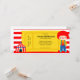 Plain white envelopes are included with paper invitations and will come to fit the invitation size you select. If you don’t need the envelopes, you may choose to not receive them by selecting the dropdown below "Envelopes" and choosing "None." If you’d like to have a design on your envelopes, you can browse all of these available envelopes to find the design that complements your Circus Birthday Ticket Invitation.