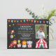 Circus Carnival Birthday Party Invitation with custom photo. Boy 1st First Birthday Invitation. Circus themed Party. Chalkboard Background. 1st 2nd 3rd 4th 5th 6th 7th 8th 9th 10th 11th 12th 13th 14th 15th, any ages. For further customization, please click the "Customize it" button and use our design tool to modify this template.