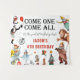 Fun Colorful Circus Themed Birthday Party Landscape Photo Backdrop - The design features the text 'COME ONE, COME ALL to the greatest birthday bash!', the childs name and age. The vintage retro watercolor illustrations are perfect for a circus, carnival or festival themed celebration. Great for photo shoots and adding to the party decor!