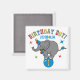 Celebrate baby's first birthday with this cute and colorful circus theme design featuring a happy cartoon elephant balancing on a ball that has a big number one on it. Text says BIRTHDAY BOY. On customizable baby and kid's T-shirts, magnets,buttons, stickers, mugs and more! PinkInkArt original!