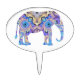 This oval cake topper is printed with my circus elephant. The blue, lavender, gold, black, and white colors are marbled into a kaleidoscope which forms the elephant.