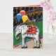 In this ring, a silly, happy monkey rides astride a stately balloon carrying elephant wearing a banner reminding us that "Elephants Never Forget" while the circus crowd cheers on! Inside, the monkey chimes in "And Neither Do I" Happy Birthday! Bright, cheerful, original digital graphics by Leslie Sigal Javorek.