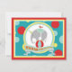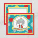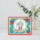 Fun elephant with party hat balancing on ball with bird with hat perched on its back with polka dot print thank you card.