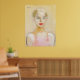 Beautiful art poster by Helene Schjerfbek called "Circus girl". This feminin, artistic poster has a calm and stylish expression with its positive and pleasent colors, which fits perfect in a room with the same expression. The contrast between the red, attention-catching lips of the circus girl, and the soft colors around her gives a beautiful and satisfying look.