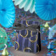 Vintage grunge distressed circus party favor boxes in accents of blue and faux foil gold.