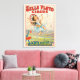 Vintage Sells Floto circus poster showing tight-rope walker M'lle Beeson prancing with a parasol, circa 1921.