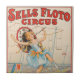 Vintage Sells Floto circus poster showing tight-rope walker M'lle Beeson prancing with a parasol, circa 1921.