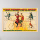 Vintage Adam Forepaugh and Sells Brothers circus poster showing bicycle riders on tightrope, circa 1900. The miraculous Melrosas.
