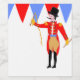 Charming hand-drawn and colored Circus Ring Master in a red tail coat, tan jodphurs, and black top hat and boots takes center ring at a red, yellow and blue Circus theme party