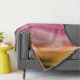 A quality printed throw has its advantages. This is a much finer weave throw than its loopier cousins, and though lighter, it is worth the investment for custom room accessorizing. The back is much prettier than the typical brown, and the fringe on the long sides very vivid, the selvage nicely done. Before photographing, I washed the throw in cold water, delicate, with a thicker woven throw the same size. On tumble dry low, this throw was dry in half the time as the other. This is a very practical quality if you use throws for furniture covers or to wrap up in frequently. The sleekness of the fabric makes it a great layer for accenting or protecting without the feeling of sitting on too much stuff. Perfect for napping or when you feel a light chill coming on. The color printing is beautiful and on this fabric, matched the design and color of my Photoshop image. This is an advantage for blending room fabrics and colors. The fringe on the short sides prints the colors from the design image and therefore varies from the side fringe. I streaked a white fractal line through the plaid pattern to give the illusion of weaving. This printed as crisp as an illusory thread, and put some white in the short side fringe, showing another advantage of print vs loomed- for artistic purposes, line lines, detail, and color integrity can be planned and preserved. My loomed throws have color limitations and more of a needlepoint texture. Print throws reproduce an exact image. The throw felt a little stiff straight out of the package, but this went away in the first delicate wash. Of course I searched the wash water for ink or bleeding and there was none.