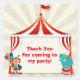 Cute sticker with red and white circus tent, a blue elephant and a clown with balloons. Perfect for party favor bags or boxes, or for envelope seals for the matching invitation that is available.