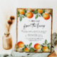Little cutie A Message from the Bump baby shower sign that features watercolor orange graphics and a modern font. This bright shower decor is perfect for a gender neutral citrus or little cutie themed baby shower. Pair it with anything in the BRINLEY collection for a cohesive look.