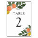 Customize this table number card. Featuring citrus fruit and greenery.