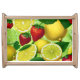 This serving tray features a vibrant citrus and berry pattern with lemons, oranges, limes and fresh berries arranged on a bright turquoise background. The lively color palette creates an energetic, summery look that feels refreshing and fun. With its sturdy construction, glossy finish and practical handles, this tray is perfect for serving drinks, snacks, breakfast in bed or outdoor gatherings. A cheerful décor piece for anyone who loves colorful, fruity, feel‑good designs.