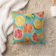 This artwork showcases a lively and refreshing pattern of citrus fruits, featuring vibrant slices of oranges, lemons, limes, and grapefruits against a bright turquoise background. The juicy, colorful fruit slices are depicted with a playful and stylized approach, capturing the essence of summertime and freshness. The use of bold, contrasting colors and the circular arrangement of the fruits create a dynamic and eye-catching composition that exudes energy and zest.