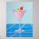 A sophisticated and refreshing cocktail illustration featuring a sleek martini glass filled with a light pink beverage, garnished with a vibrant grapefruit wedge. The cool blue background and reflective surface create a serene and stylish ambiance, making it a perfect piece for lovers of minimalistic and modern art.