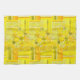 This is an original abstract citrus fruit pattern I created that features slices of lemons, limes and oranges and has a patchwork weave look with stripes in sunny shades of yellow, orange and green and almost looks like gingham plaid. It makes a cool zesty summertime tea towel for your fresh and sunshiny kitchen. #lemons #limes #oranges #citrus #pattern