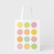 Juice up your trip to the grocery store with this reusable grocery tote bag featuring a modern pattern of bright and happy citrus fruit slices.