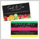 Citrus fruits with orange, lemon, and lime with bright red strawberries and a few decorative abstract flowers on this business card for a home baker, baking or bakery biz, pastry chef, personal chef, cooking classes, caterer or catering company, personalized with your choice of color scheme and fonts.