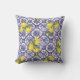 Citrus Lemon Blue Portuguese Tile Mediterranean Throw Pillow