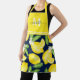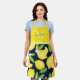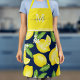 This monogram apron features a watercolor lemon pattern with solid yellow at the top where your initial and name can be added.