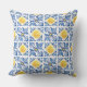 Citrus Lemons Blue Mediterranean Pattern Throw Pillow