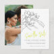 Modern simple dark gray, white and fresh lime green blossom drawing wedding save the date with a reverse photo card. Edit this save the date card with your own names and wedding date on one side and your own photo on the reverse. Other matching items available. Original pencil drawing art and designed by www.mylittleedenweddings.com