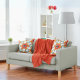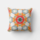 The color theme of this pillow is a vivid and warm palette, dominated by orange, green, and blue, reminiscent of a tropical paradise. It's ideal for adding a pop of color to any space.