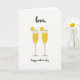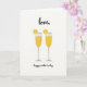 This greeting card features a bright white background with two tall, slender flutes centered side by side, angled just close enough to suggest a shared toast between close friends or loved ones ❤️. Each glass is filled with a sunlit golden drink that catches the eye, and a round citrus slice clings to the rim, showing neat segments in a warm orange-yellow. A soft, wavy line of foam crowns the top of each drink, adding a light, airy touch. The stems and bases are a gentle creamy tone that keeps the scene calm and balanced. Near the top, the word “love” appears in flowing black lettering, with a small red heart placed like a dot beside it. Near the bottom, “happy mother’s day” is written in matching black lettering, centered beneath the glasses, with plenty of open white space around it 🌼. The citrus slices sit on the outer edges of the rims, while the golden liquid glows brightest in the upper half of each flute.