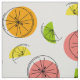 Cool design with a retro touch featuring stylised citrus fruit slices - orange, lemon, lime and pink grapefruit, on a white background. A customizable design for you to personalise with your own text, images and ideas. An original digital art image created by QuirkyChic.