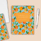 Citrus oranges fruit patterned notenook - personalize with your own details. Pattern to front and back. Matching items available. Artwork from artists own illustrations. Please contact me for customization and special requests. © Zoe Chapman Design