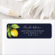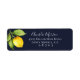 Watercolor lemon and leaves, navy blue return address label. Personalize/Customize text, font style, color and size.