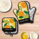 Citrus Pattern Green Orange Lemon Personalized Oven Mitt & Pot Holder Set