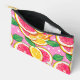 This accessory pouch features a vibrant citrus design with glossy slices of grapefruit, lemon, and orange set against a playful pink background with white polka dots. Fresh green leaves add a lively contrast, creating a cheerful, sunny look that instantly brightens any bag or workspace. Perfect for makeup, stationery, tech accessories, travel essentials, or everyday small items, this pouch blends practical organization with a fun, uplifting aesthetic. Lightweight, durable, and full of personality, it brings a refreshing burst of color to daily routines.